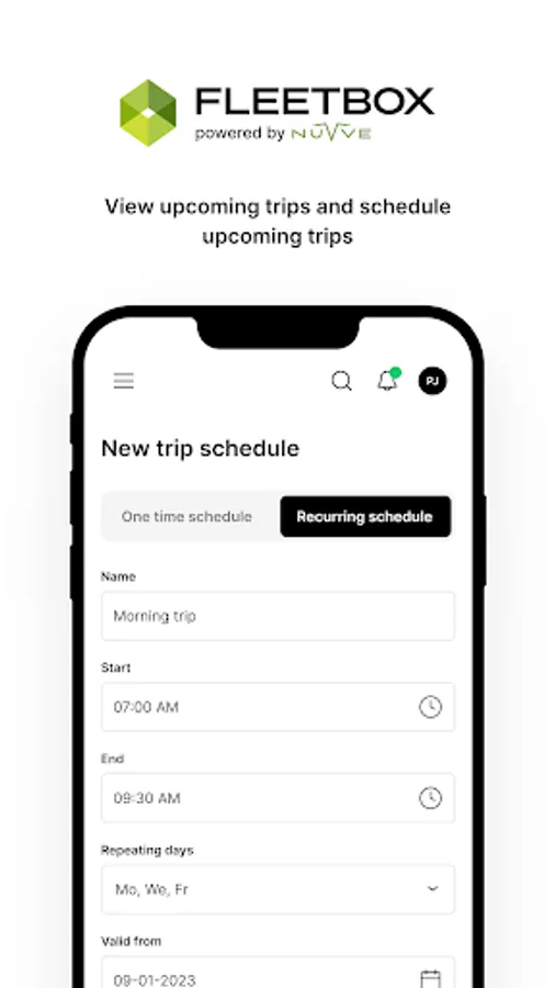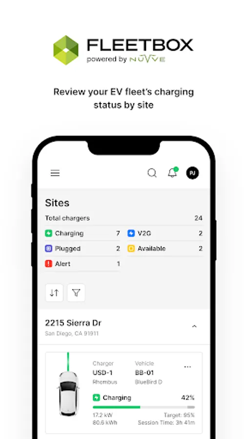 Remotely monitor and manage your electric vehicle (EV) fleets in real-time with the Nuvve FleetBox App. Users can be assigned one of two types of roles, Fleet Manager or EV Driver, for role-based access that will improve the operational efficiency of your fleet. Users can view connectivity status, battery charge level, and available range for their EVs. Trip scheduling and emergency charging features provide users with peace of mind by ensuring their EVs get charged to their preferred level at the required times.