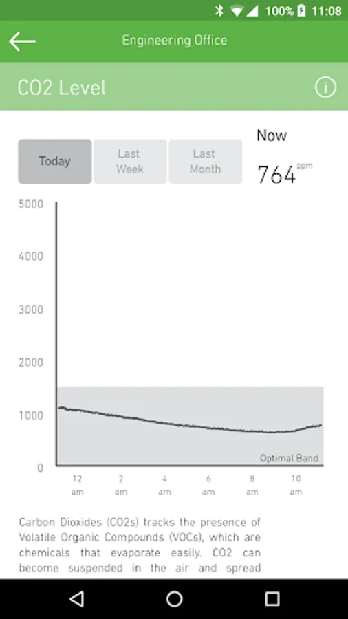 • View detailed graphs to analyse CO2 levels by day, week and month