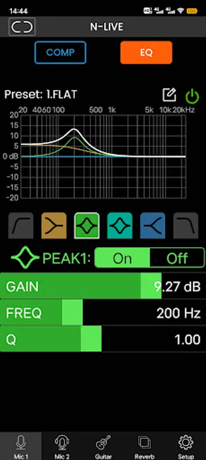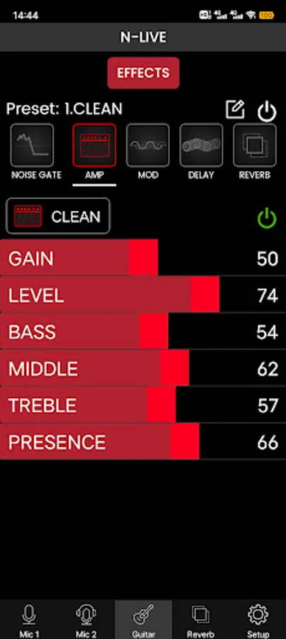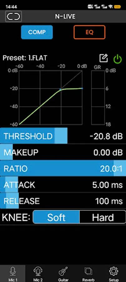 With the N-LIVE App, you can edit the parameters on your phone, including the Compressor, EQ, and Stereo-Link for the Mic/Line channels; the Amp, Delay, and Modulation effects for the Guitar channel; and the Reverb. There’s also an Easy Mode in which you can simply choose from the built-in presets for each channel.