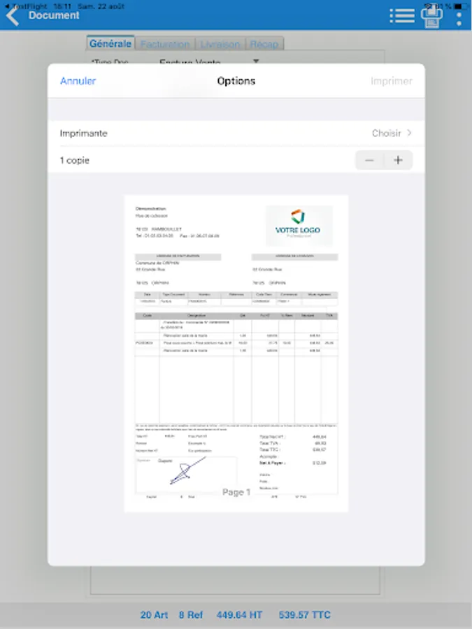 No need to have an internet connection to consult or enter in this mobile software, this guarantees you permanent and fluid use wherever you are. A simple sync via internet in wifi, 3G or 4G once a day is enough.