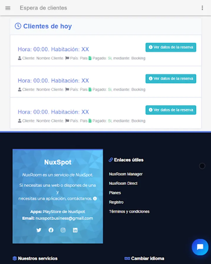 You can manage your hotel or aparments with NuxRoom everywhere! You only need an internet connection to manage your bookings