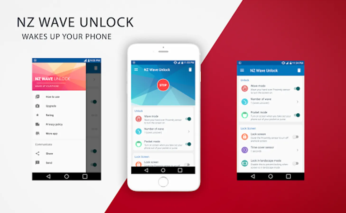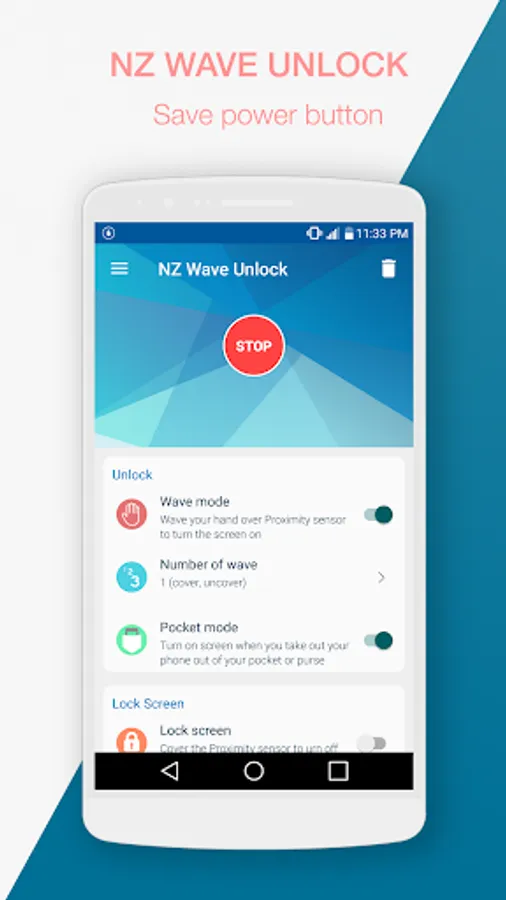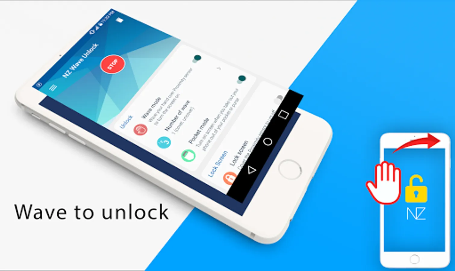 Wave Unlock is an app use Proximity sensor to unlock screen and lock screen by wave your hand over the proximity sensor. NZ Wave to unlock is allows you to unlock your device just by waving your hand over the proximity sensor and cover Proximity sensor to lock screen.
