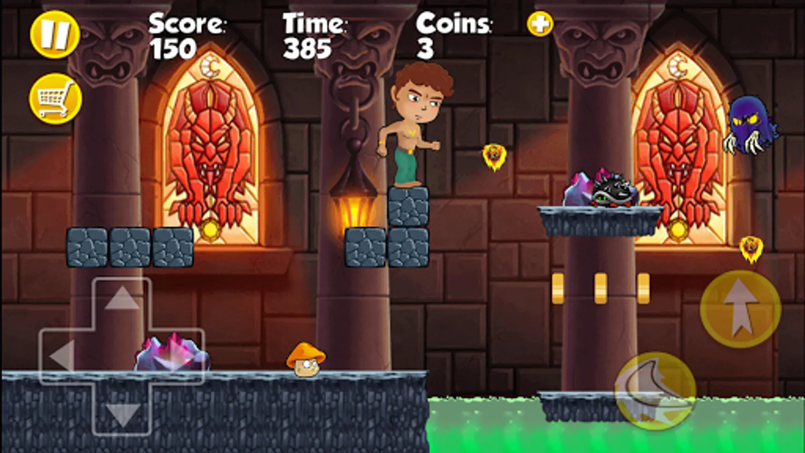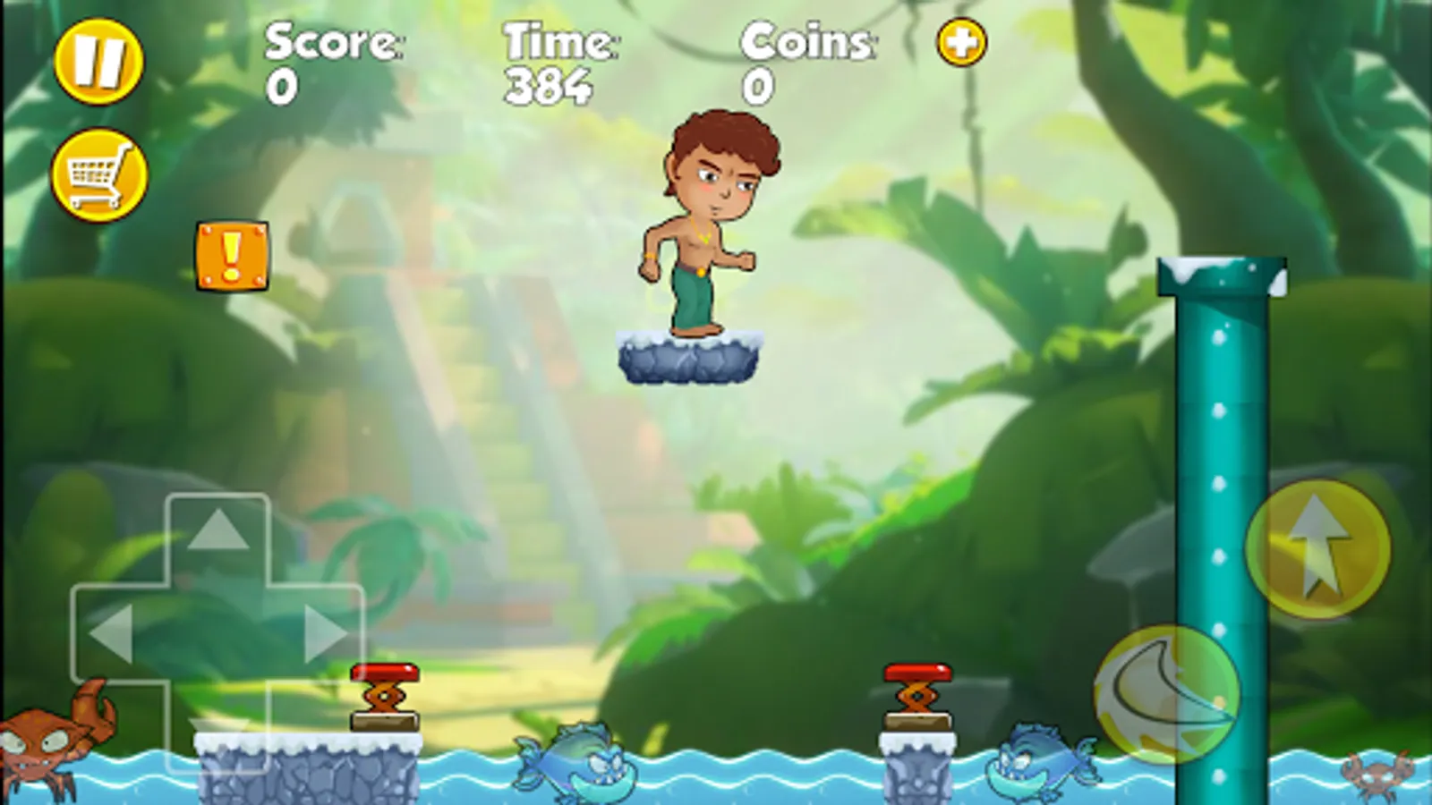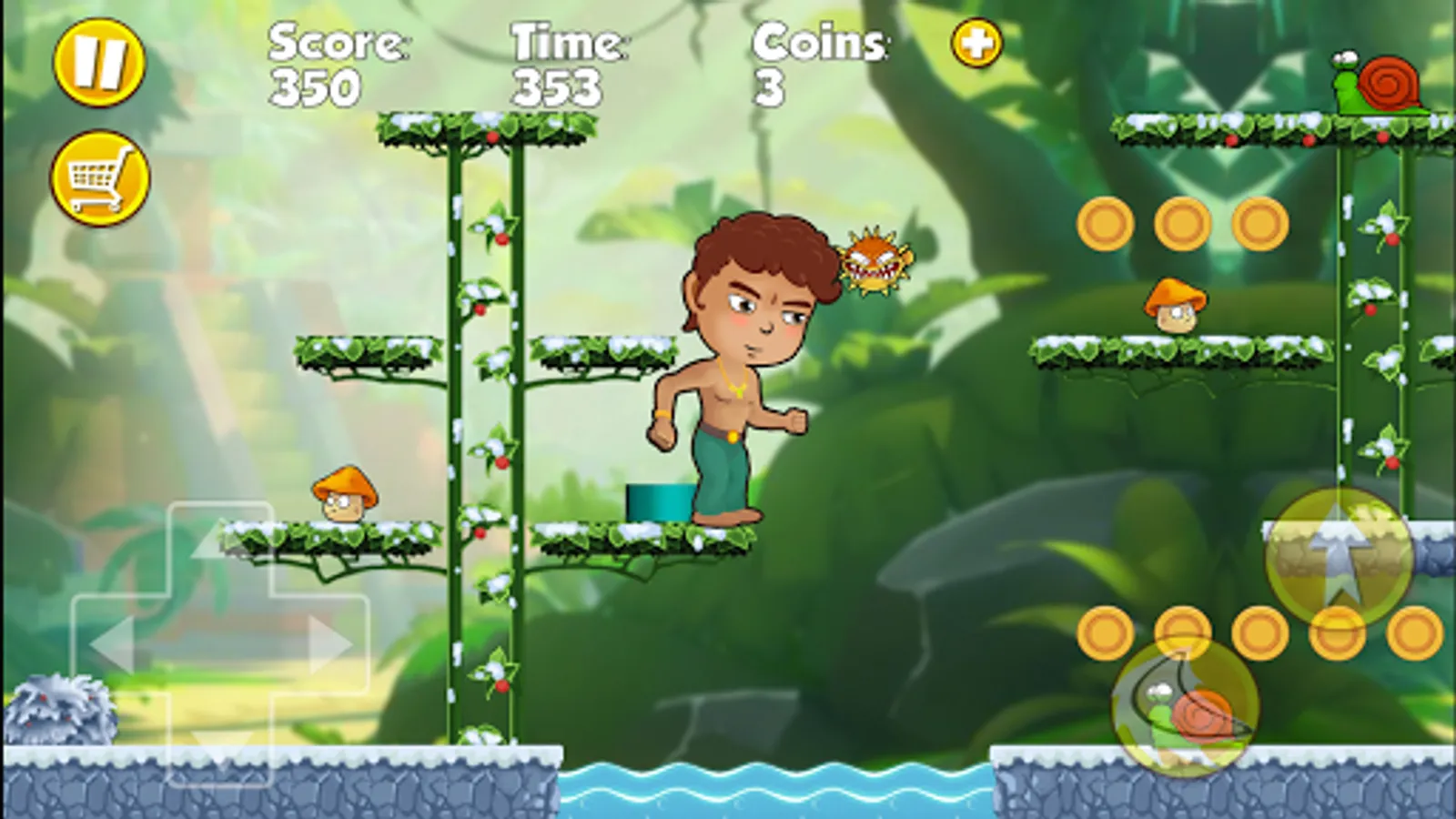 Bino’s boy in a coastal tribes in the rainforest. One day he found an outing ancient map of a treasure in the jungle. And one day he decided Bino’s treasure hunt with map guidance. In the process of looking for Bino encountered many monsters as Nob move uncle mushroom fungus is toxic to the touch will make Bino died. With Lep snail move very fast you should avoid paying it out, you can jump up stepping on it to pay attention to move and attack the other monsters, but you also avoid paying people rolling in. And Satan frog jump in full dress with their poison. Mana turtle swimming in the lake is very slow, but you help Bino’s away from the turtle out not to be bitten to death instead. especially poisonous Ted's spiders crawling up and down Oscar is extremely dangerous. Also when moving Bino’s encounters eagle Frenchs's bird Kings dinosaur eggs thrown but very dangerous when falling to Bino’s. Upon arrival, but the temple need to pass these notes is extremely dangerous monsters from medieval frame as Scorpions, Spiders Single frame, and attach Victo's gold frame Bees and extremely toxic. Especially the stone frame.