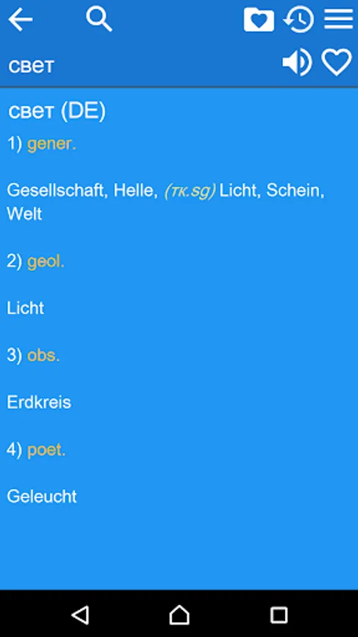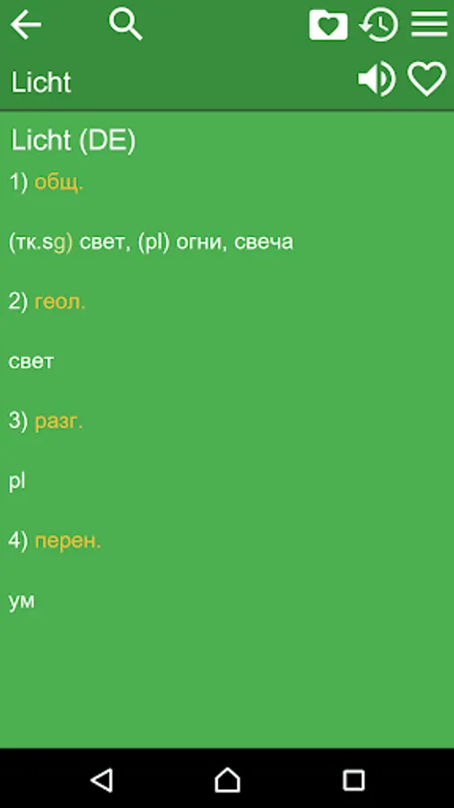 2. Favorites – you are able to add words to favorites list by clicking the “star” icon.
