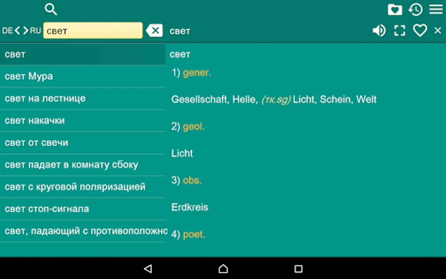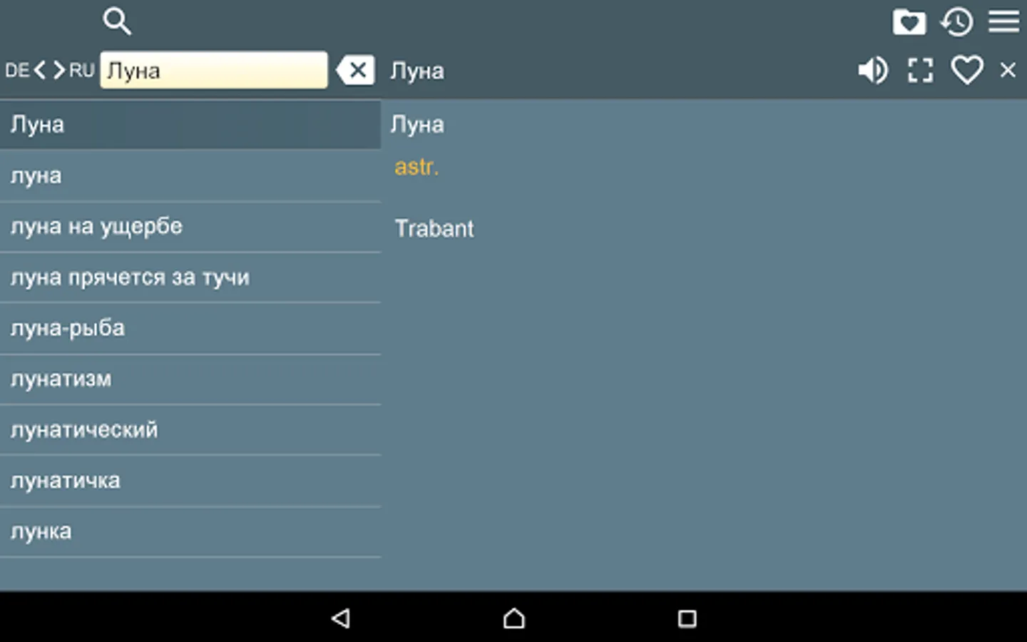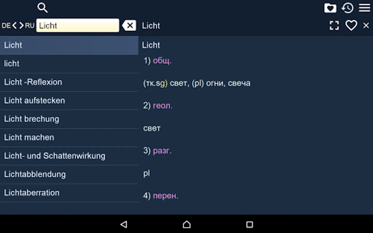 This is Russian - German and German - Russian Dictionary (Russisch - Deutsch und Deutsch - Russisch Wörterbuch, Русско-немецкий и немецко-русский словарь), containing 594000 translation articles. The Dictionary is OFFLINE and does not need the internet connection.