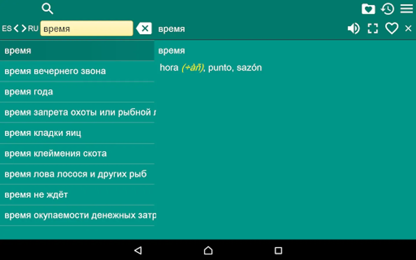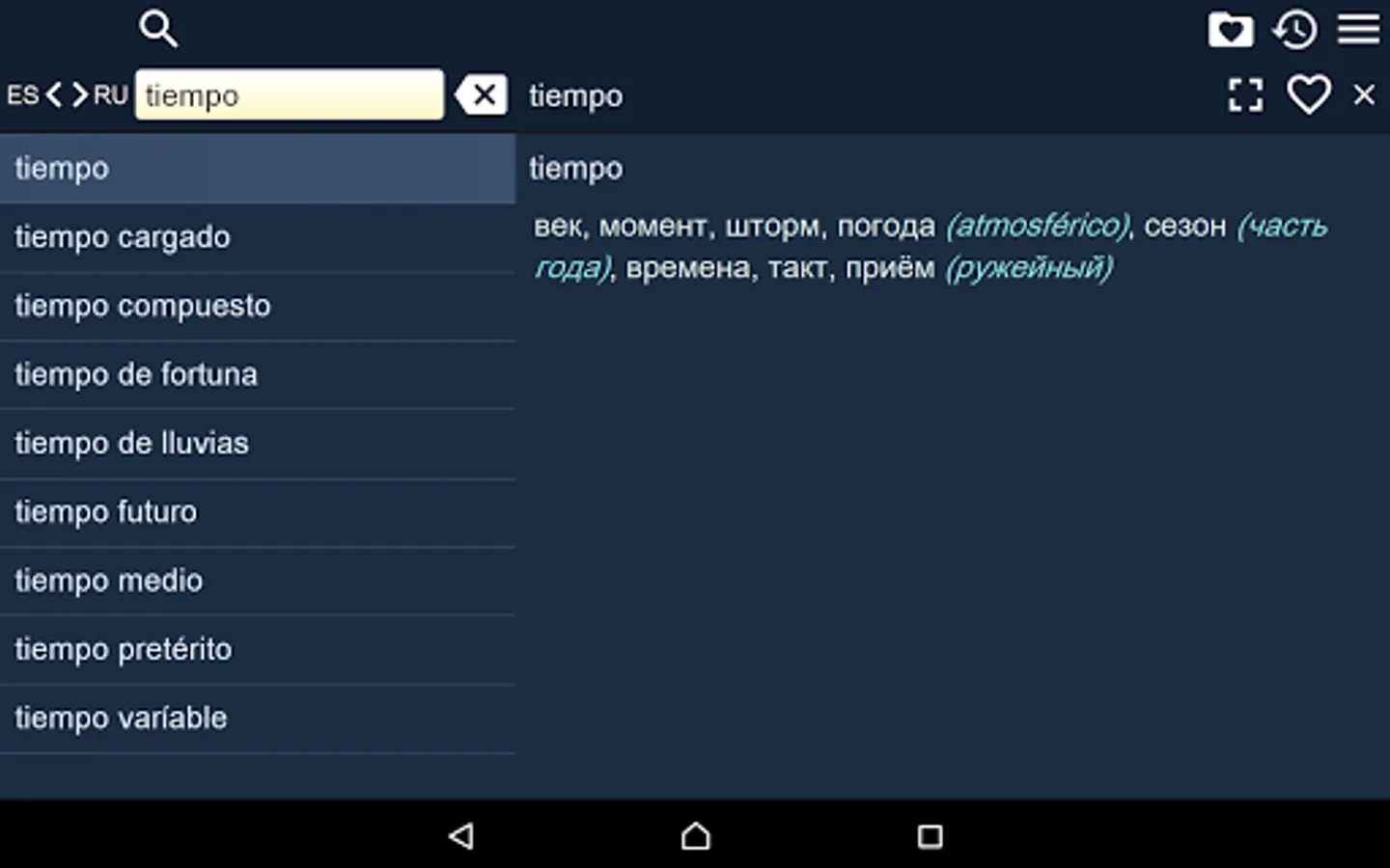 This is Russian - Spanish and Spanish - Russian Dictionary (Diccionario Ruso - Español y Español - Ruso, Русско-испанский и испанско-русский словарь), containing 92000 translation articles. The Dictionary is OFFLINE and does not need the internet connection.