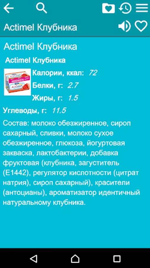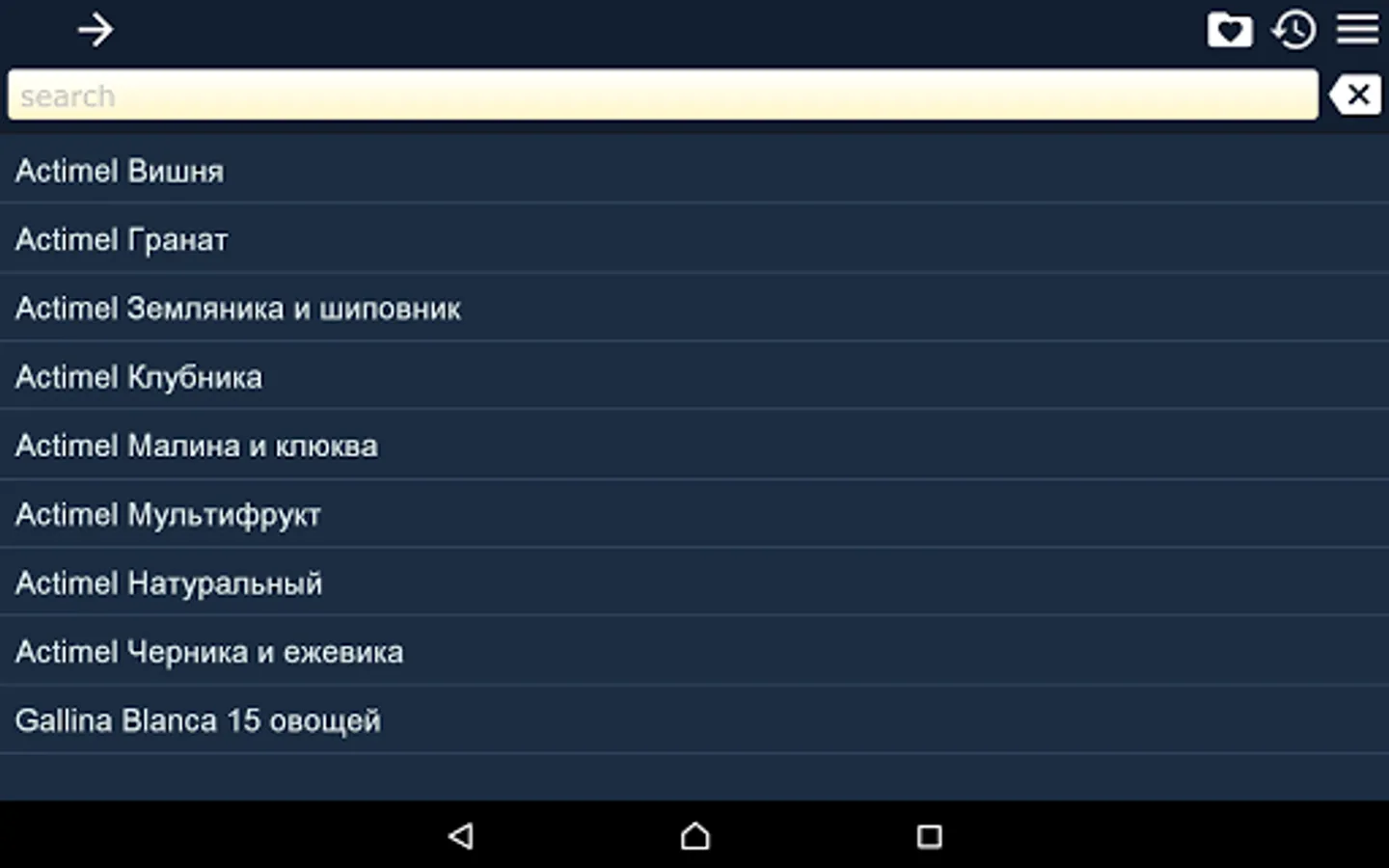 Это Справочник Калорийности Продуктов - Анализируй то, что ты ешь! Здесь представлена одна из самых полных таблиц калорийности продуктов питания. Все данные указаны на 100 грамм продукта. Поможет составить правильный рацион питания, рассчитать количество съеденных калорий. Незаменим, если Вы на диете. Справочник работает в режиме ОФФЛАЙН и не требует интернет-соединения для работы.