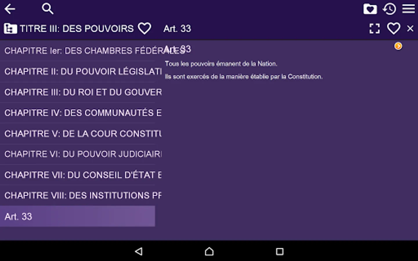 This is De Belgische Grondwet (Die Verfassung Belgiens, La Constitution Belge). The Application is OFFLINE and does not need the internet connection.
