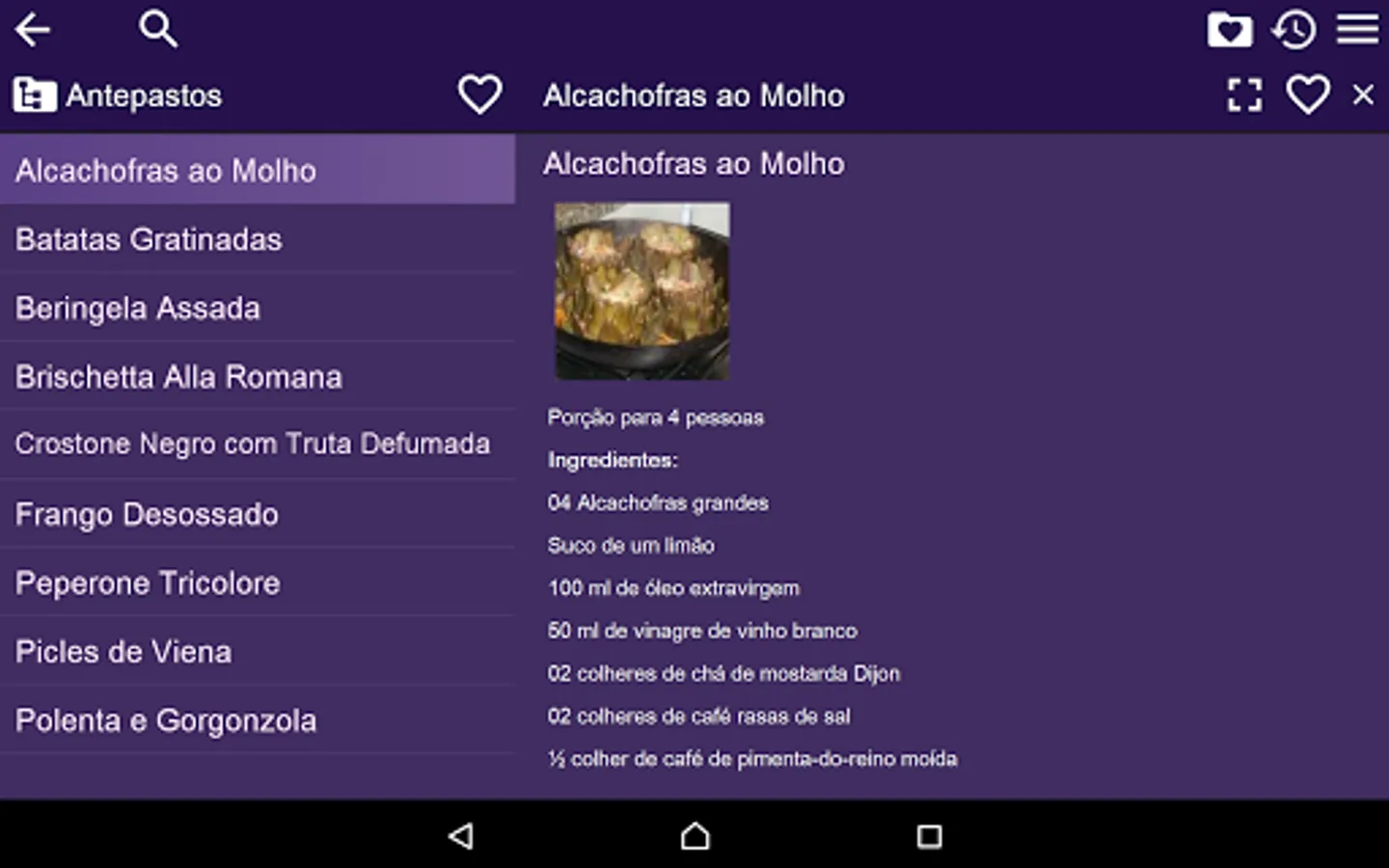 Esse é um Receitas de Culinária grátis. Mais de 1.380 receitas com 1.319 imagens para que você possa desfrutar de sua cozinha.