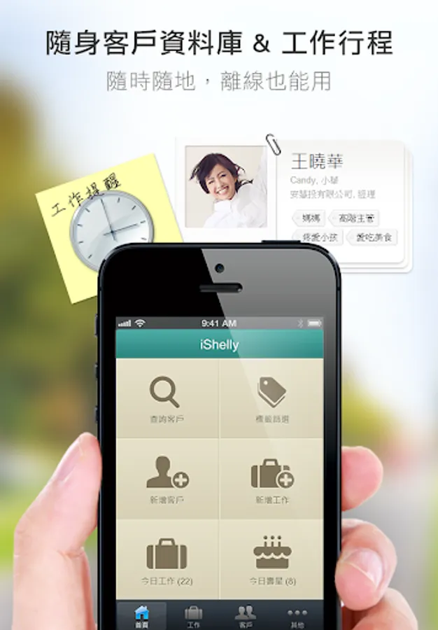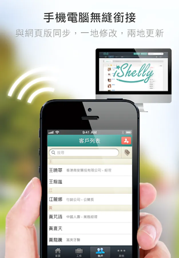 iShelly 是業務必備的隨身客戶資料庫和私人貼身秘書,在移動中也能輕鬆便捷地查詢和聯繫客戶、追蹤來往紀錄、管理工作和行程,有效維護客戶關係,快速提升業務能力!