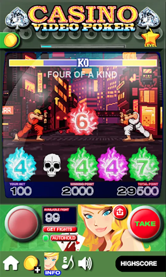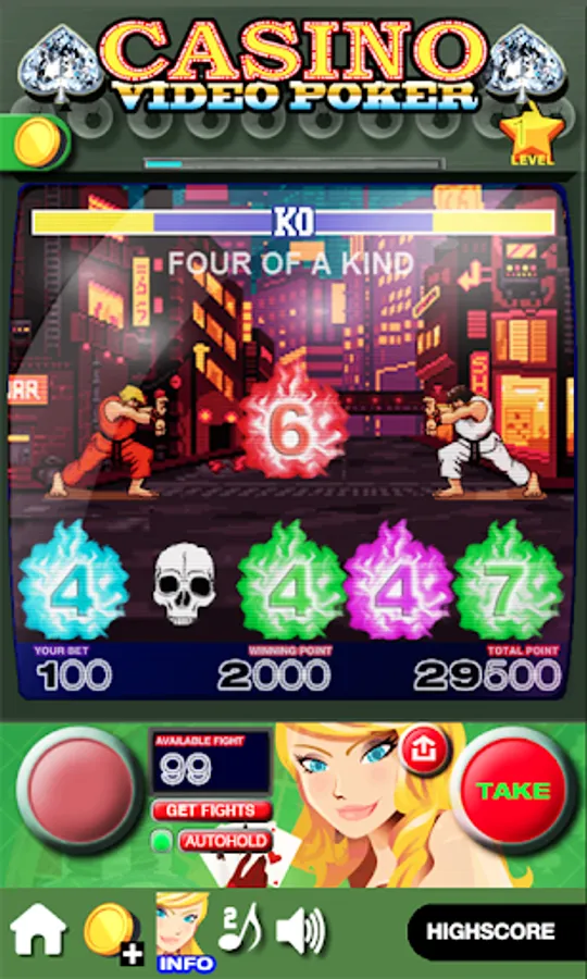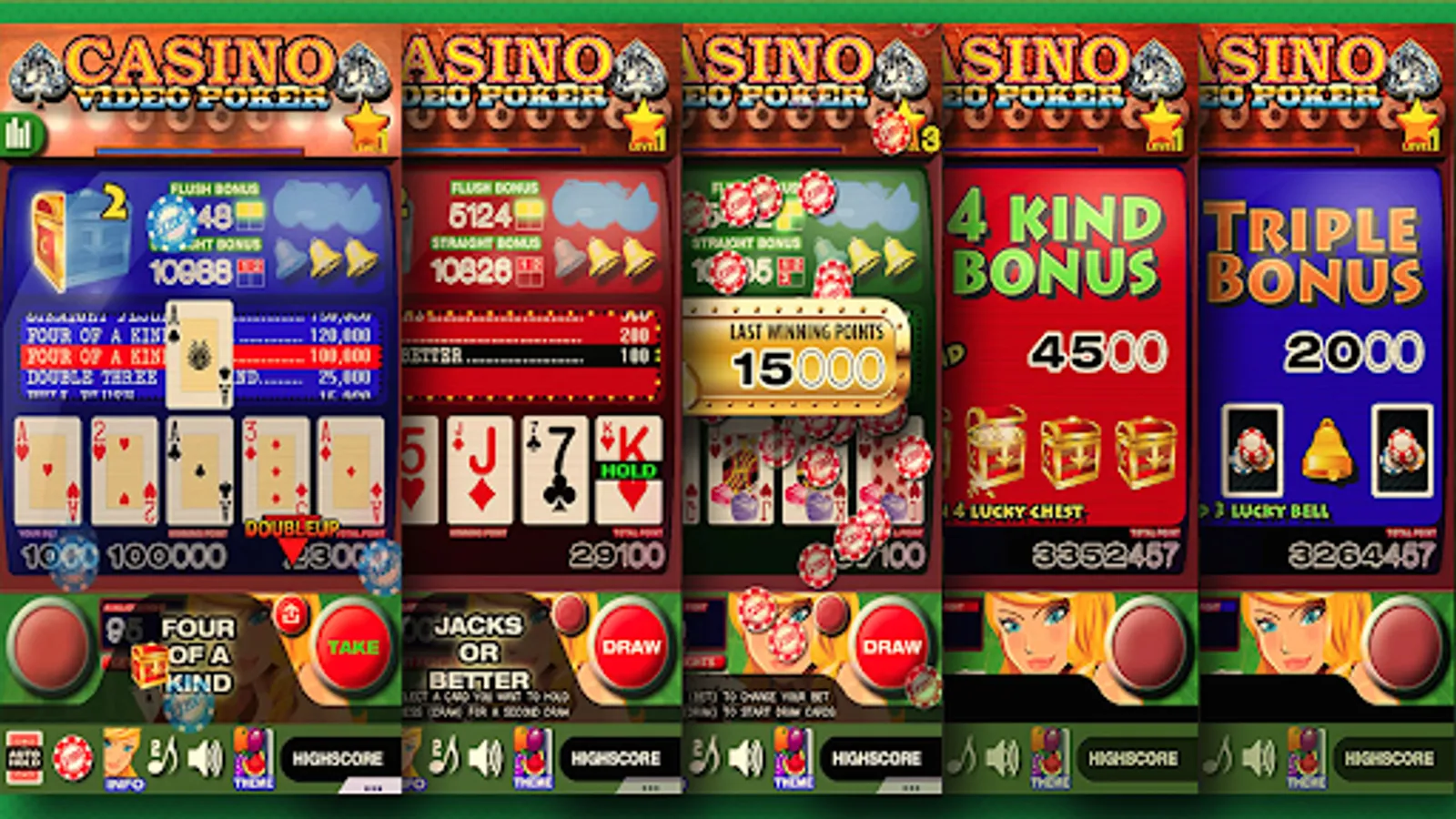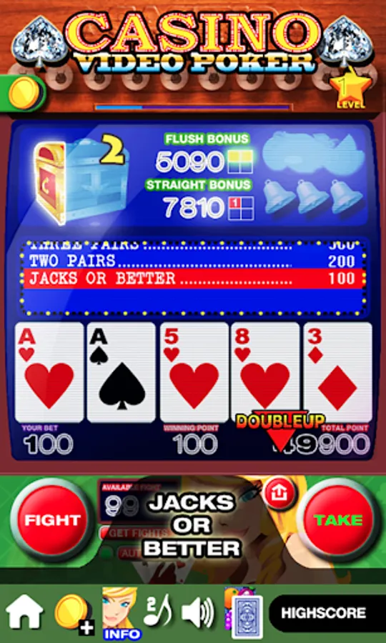 Casino Video Poker use the rule of popular Jacks or better. Great video arcade graphic and a theme of real casino video poker / slots machines.