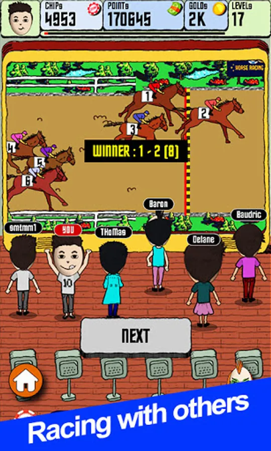 You can play offline or online. With online you can see many real people on the club. You can see their status, likes them or race with them. The way to win is to act like manager and bet for the winning horse. If your predictions is good, you will be a winer.
