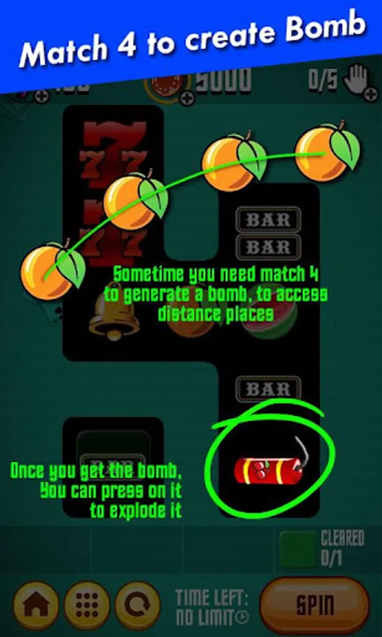 Experience the thrill of a casino slot free slot machine combined with the addictive nature of a match 3 puzzle game. Spin the reels, wait for luck to strike, and witness the fruit bomb smashing through obstacles, rewarding you with a thousand coins! Match 4 items to unlock a fruit bomb, and if you're lucky enough to match 5, prepare for an even more explosive surprise! Enjoy the fun and relaxation of this free match-3 game, where each puzzle brings a new level of excitement.