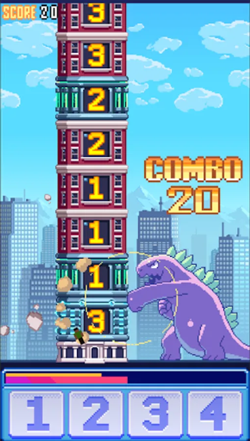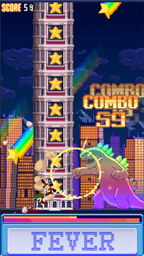 Fever time for every 50 combos! Become a powerful monster and crush buildings faster.