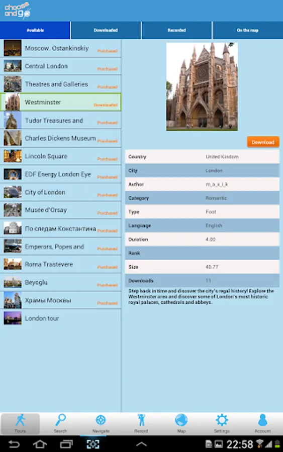 Record your own tour and share it with friends.