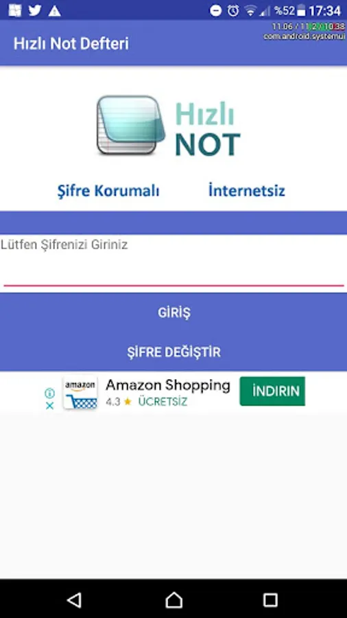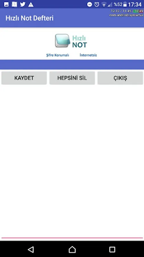 Hızlı Not Defteri - Şifre Korumalı - İnternet Gerektirmeyen Uygulama.