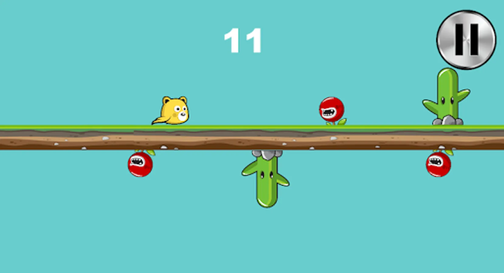 2 Flying Bears 1 Level. One flies away and the other comes in. Neither can be together in the crazy world. You as an omnipotent being in the game controls them. Swap the flying bears to avoid killing them on prickly cacti and killer berries. The longer you go, the higher your score.