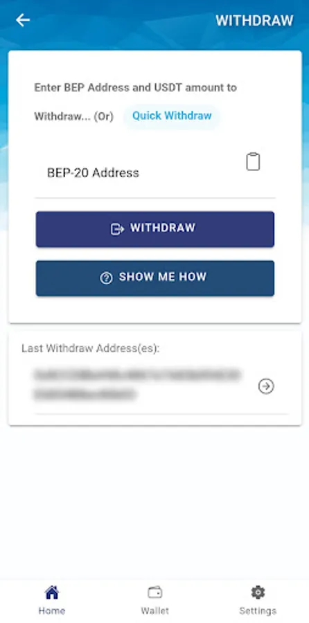 A simple yet powerful crypto currency wallet. You can easily use USDT crypto currenty as your money, send/receive money from other users, use integrated services and pay for them using crypto, create integration to your own services (such as games) to receive payment in crypto currency.