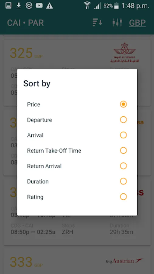 ✓ Filter results by the cheapest flight, the quickest flight or a happy balance between the two