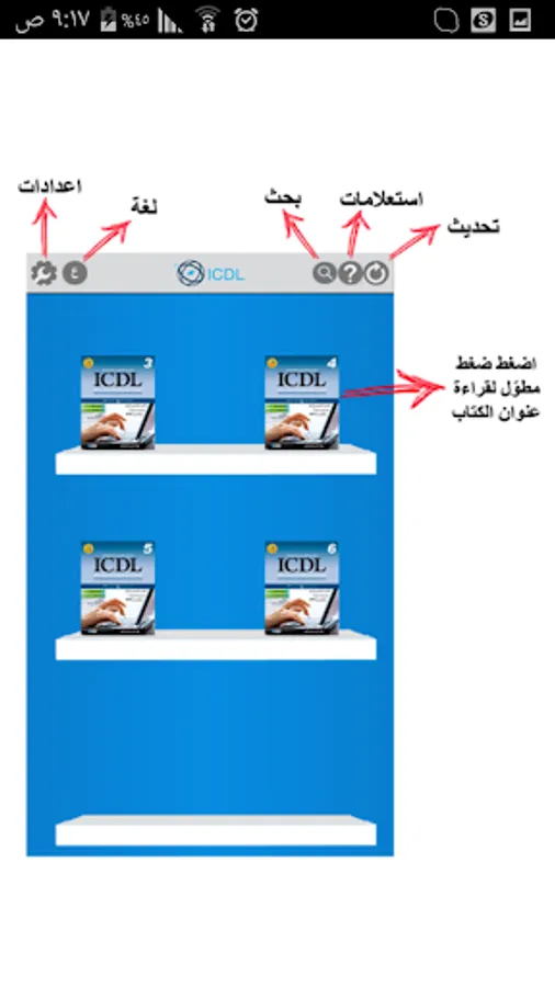 The ICDL e-book is the ICDL Arabia approved courseware in an ebook format which allows you to access approved course ware material through your Android devices for more convenient reading of the learning material. Please contact your nearest accredited centre to receive your user name and password which will provide access to your personalised library.