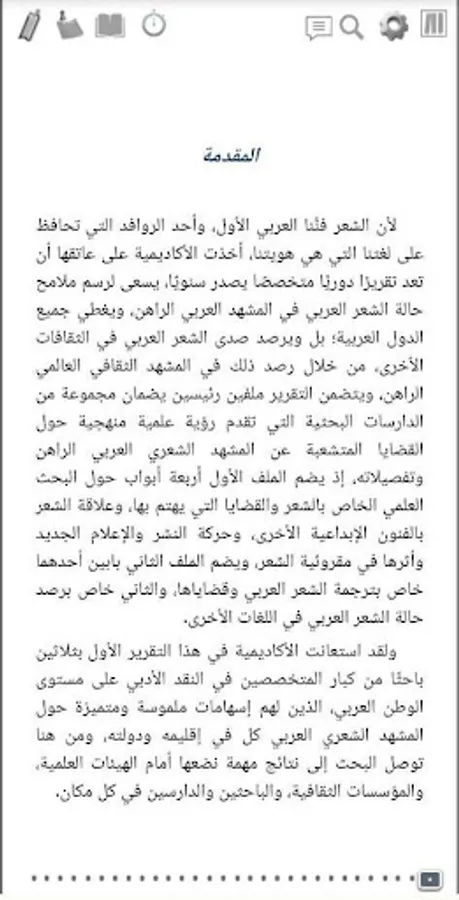 كما يمكنك الضغط على لائحة المحتويات في رمز الكتاب للانتقال إلى الفصل الّذي تريد قراءته، أو استخدام الشّريط الظّاهر أسفل الشّاشة للانتقال إلى الصّفحة الّتي تريد مطالعتها.