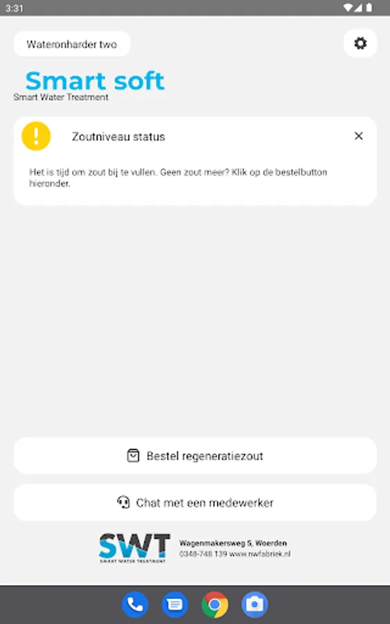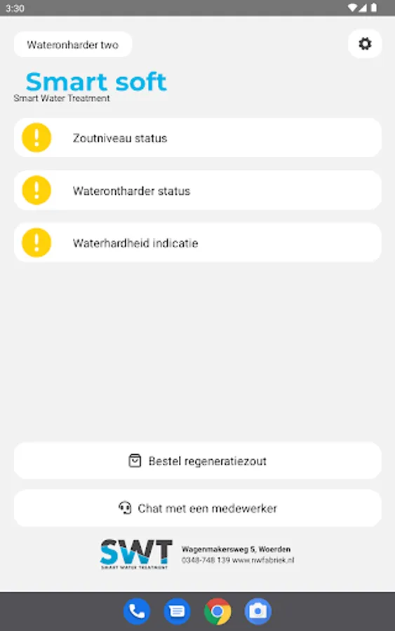 If all regenerations have been carried out properly and there was always enough salt available during these regenerations, we know that the status of the water softener is good. This is a fact that the end user would like to know. This, together with salt level and water hardness, is visually displayed in the smartphone app as colored circles.