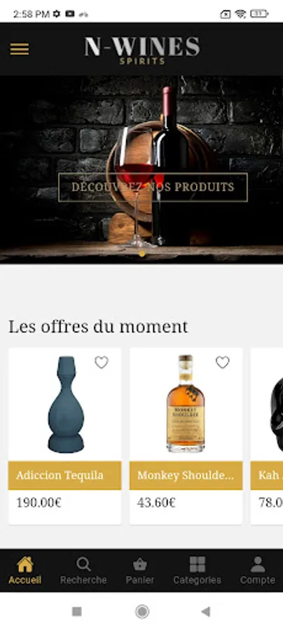 Découvrez les produits de N-Wines et commander directement de votre téléphone ! Spiritueux, Vins, Alcools, Champagnes, des produits d'exceptions !