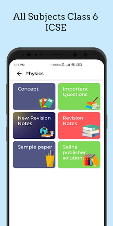 In this app, UI is very easy to use for all students and also includes all the material which is used in Class 6 ICSE.