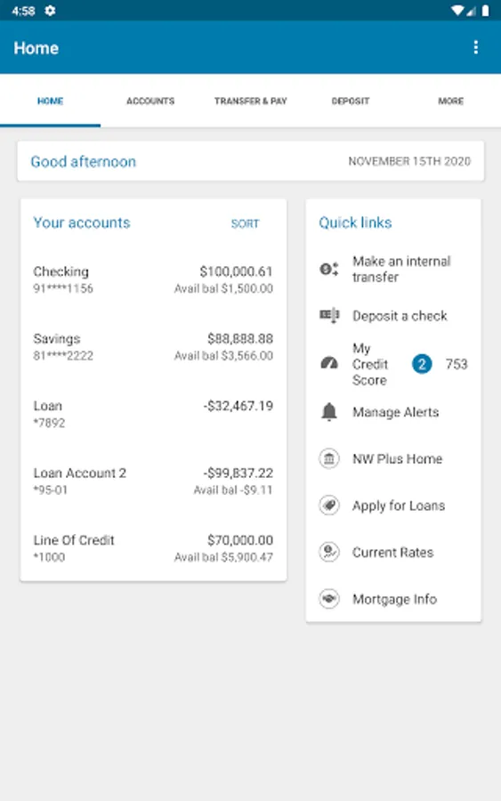 Welcome to NW Plus CU’s Mobile Banking App where we offer 24/7 convenient, secure access to your accounts at the touch of your fingertips. With the NW Plus CU Mobile Banking App, you can securely access your accounts, view recent transactions, pay bills, transfer money, find branches and remotely deposit checks.