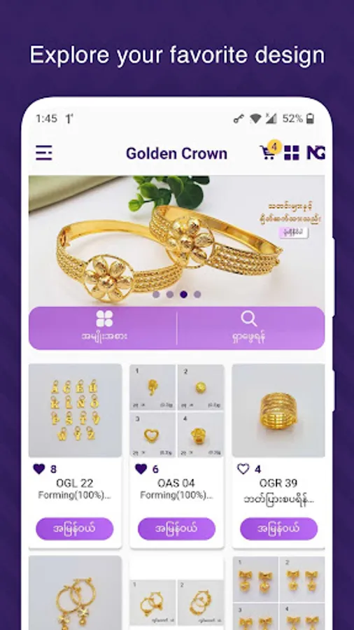 Be it Stylish, Trendy, Composed, Elegant or Traditional Jewelry, now available in all new “Golden Crown” mobile app. Online Shopping gives you the convenience to concentrate more on design rather than time at your pleasure. Easily swipe and browse through 1,000 plus jewelry designs, like Earrings , Necklace , Pendants, Bangles , Rings, etc... at your finger tips in a secure and convenient way. Reap the benefits from “Golden Crown” Online Jewelry Shopping App like never before.