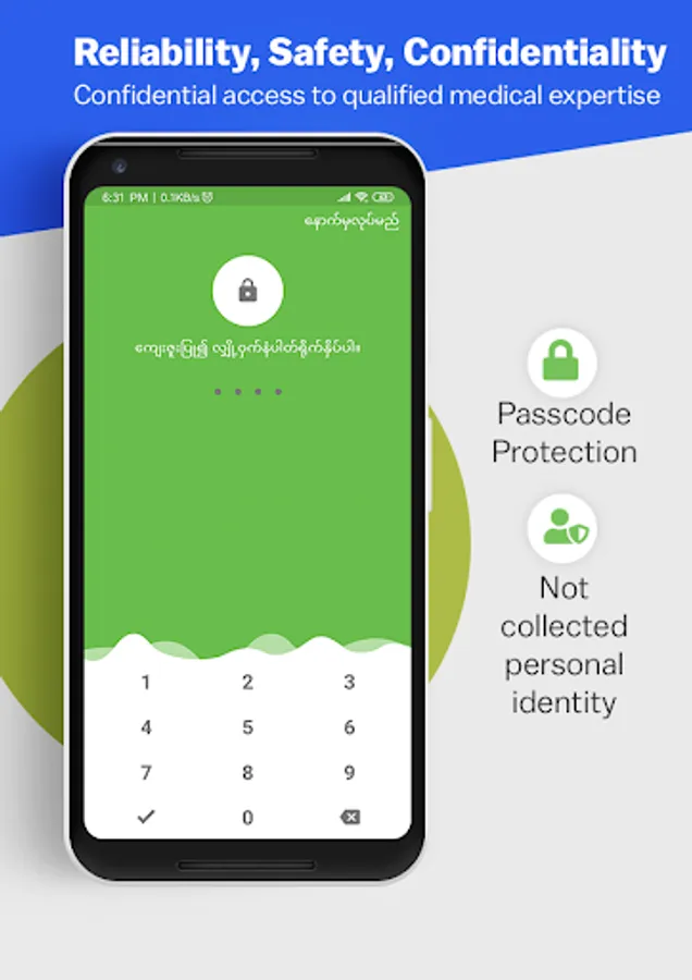 MyHealthcare: The users can consult with doctors round the clock, search for nearest physical healthcare units and give feedback on those at their fingertips. It allows the residents to access quality health information and expertise. For our patient, our services are totally free, if they ask using text message. We will charge the user, if they want to ask by voice call and video call. Apart from phone, age, gender and township, other personal identity information is not collected. Setting own passcode to open this user-friendly app makes it more secure.