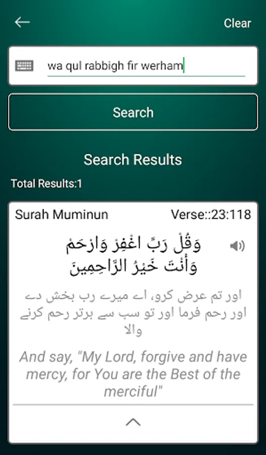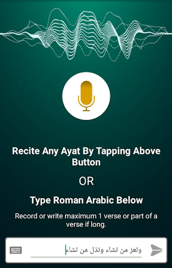 Roman arabic search is attained by using special phonetic algorithm search combined with other NLP techniques for better results. The other feature of this app is recognition by voice. In voice recognition if recognizer do not recognize correctly but the verse sounds like the actual verse, it will get the verse from the database.