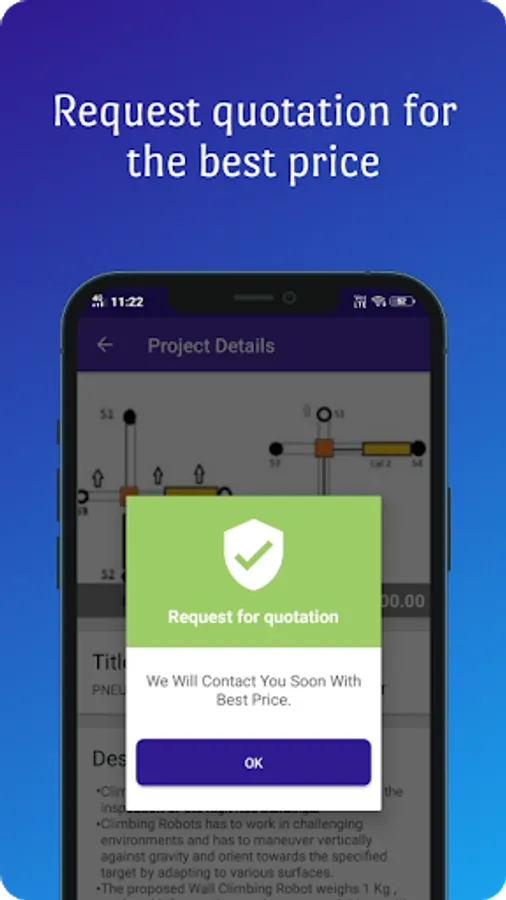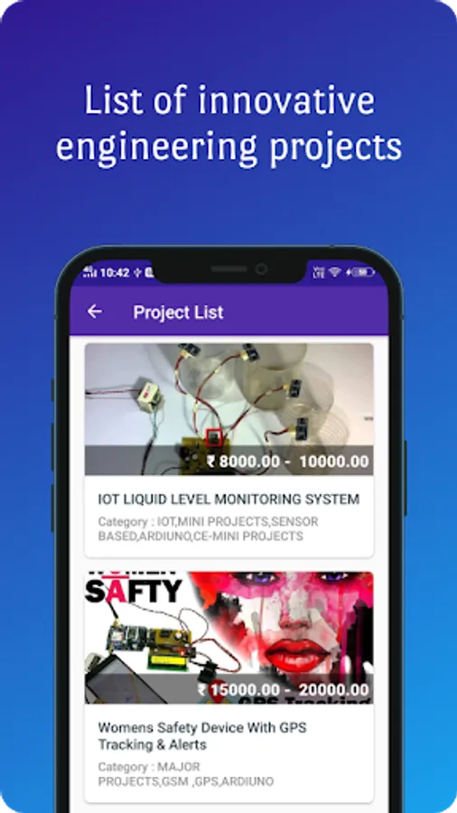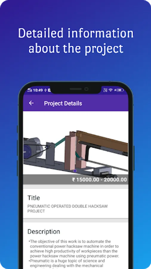 On tapping a project name, you get to know the detailed information about every project. The objective of the project is mentioned in the description.