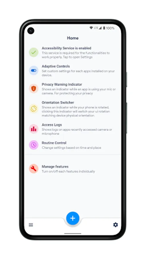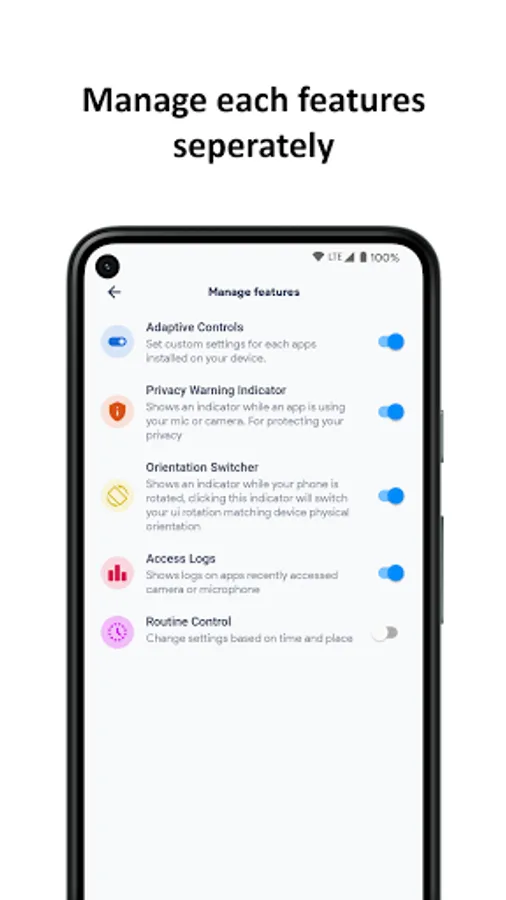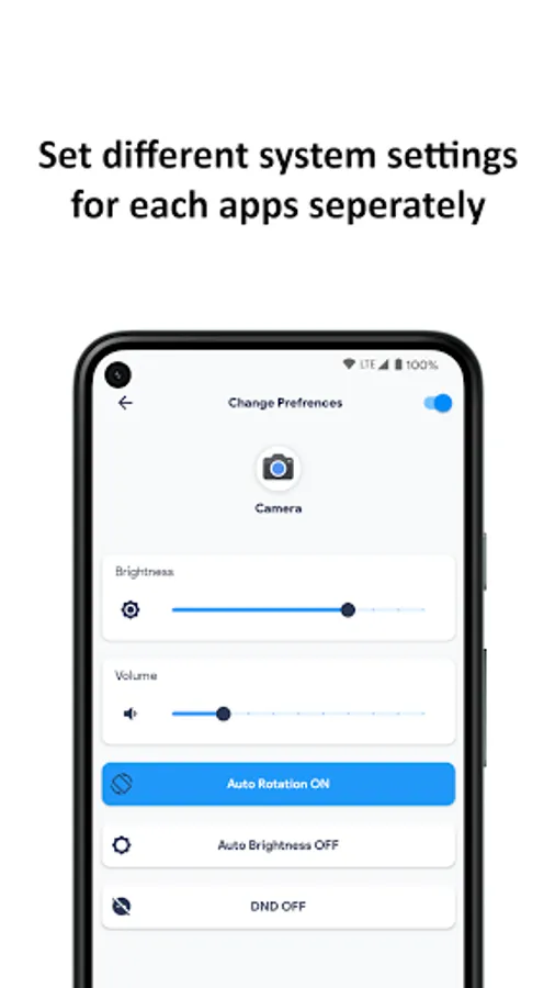 Adaptive controls lets users to set custom system settings for each apps individually, Adaptive controls can control system settings like Like brightness, volume, auto brightness, auto - rotation Do not disturb mode etc. dynamically according to the per app settings given by the user . Adaptive controls also includes many other features like Orientation switcher, Privacy warning indicators , Access logs , Routines etc.