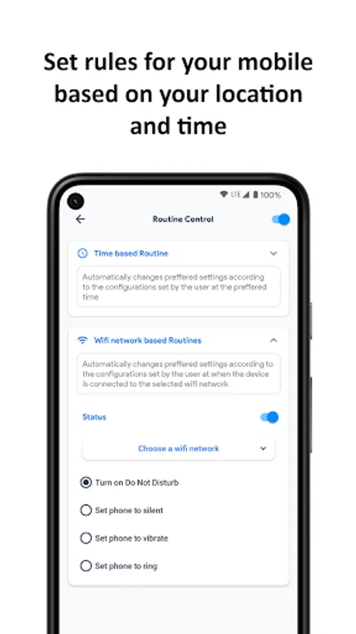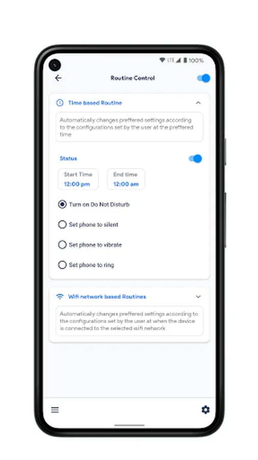 Routines: This feature helps to change the ringer settings dynamically according to your location or based on a time set by you. Wifi based routine changes your settings when you are connected to a Wifi network, This can be helpful for you if you often forgets to change your ringer modes when getting from work to home, or when going off to college.