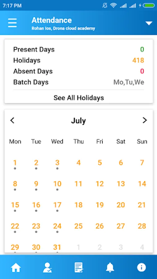 My Class: If you are a batch tutor, now you can mark attendance for your class, access student’s profiles, class time table, list of subjects and teachers. This will make your day lighter.