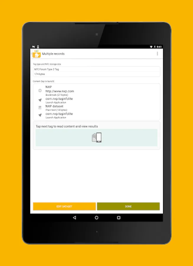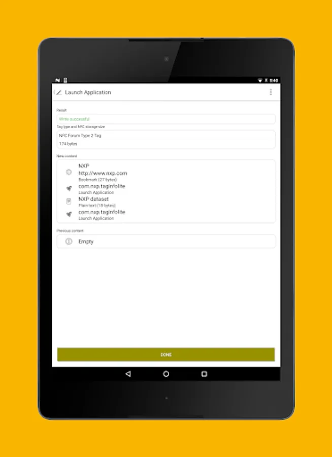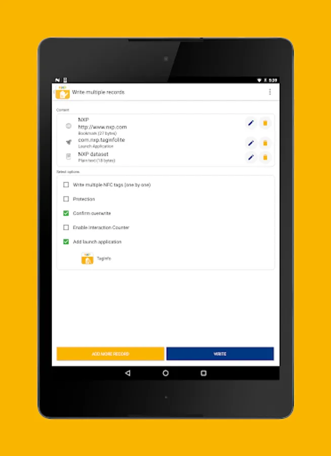 Next to the creation and storing of NFC data sets the NFC TagWriter by NXP also allows to automatically launching applications based on the data read from NFC-enabled tags and items containing NFC-enabled electronics.