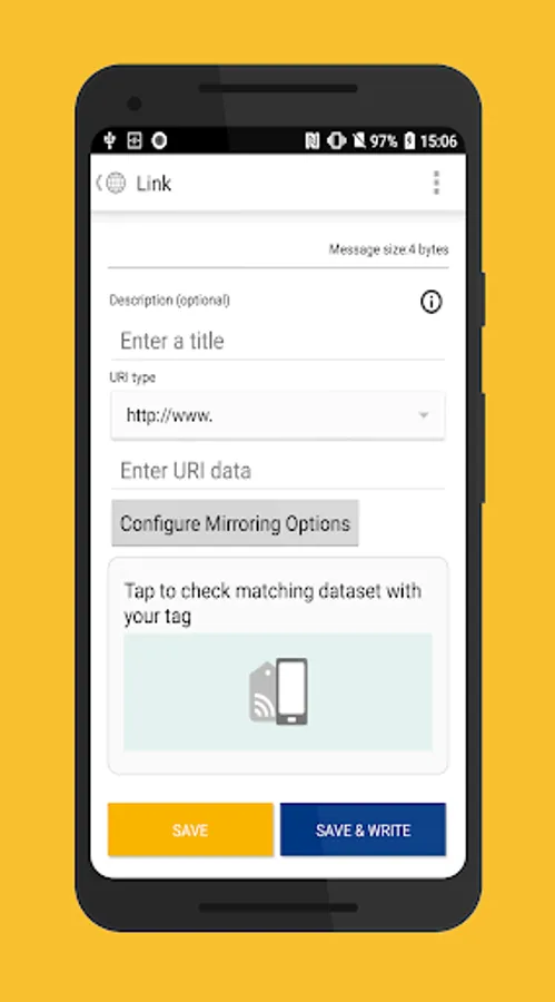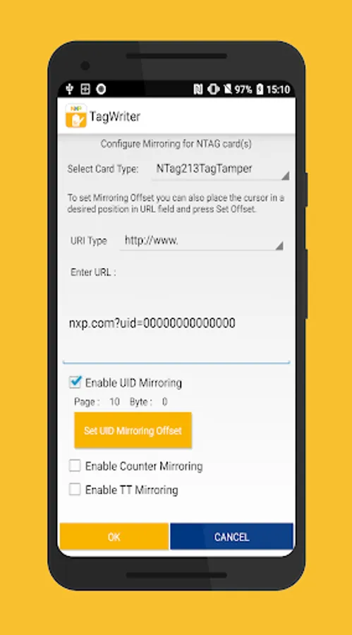 - URI to create any kind of URI, also those not directly supported by the NXP TagWriter