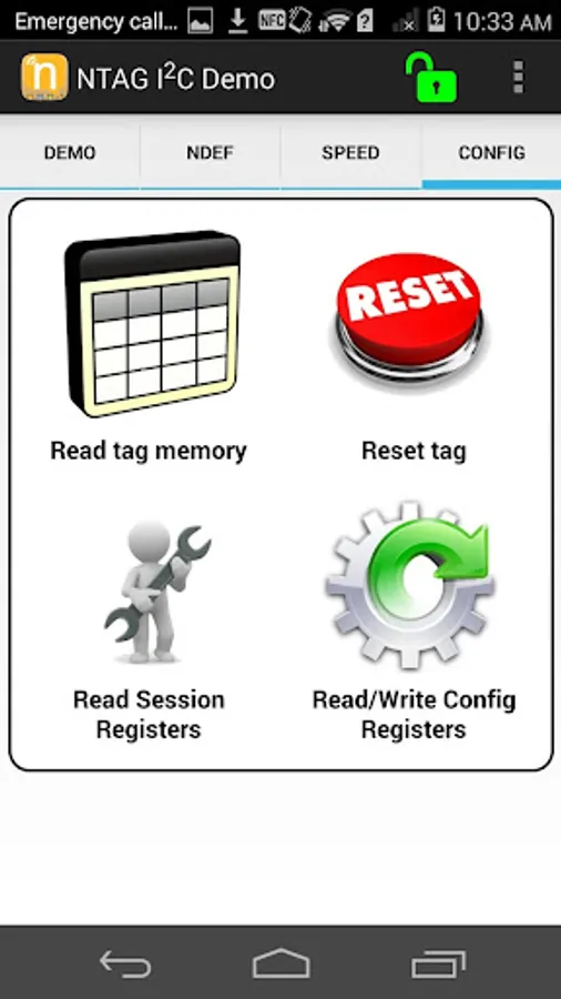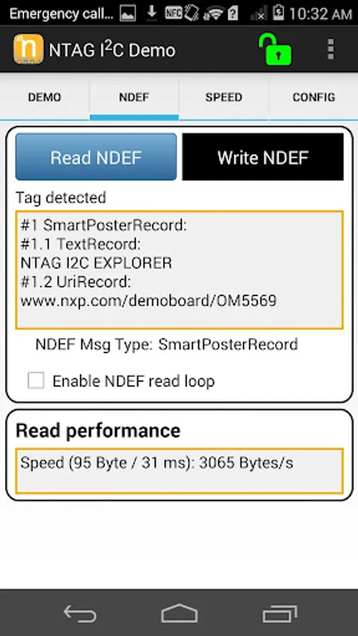 You can use it to change the LED color to light up on the NTAG I²C demonstration board, to measure the speed of download and upload with NTAG I²C based on your NFC device or to read & change the chip configuration.