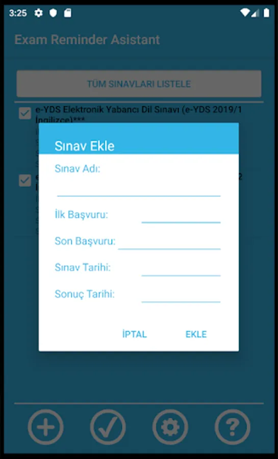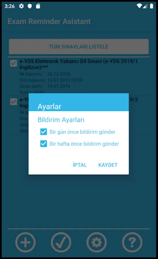 • You can connect to ÖSYM's exam calendar site and get the exams and dates as well as you can add your own exams.