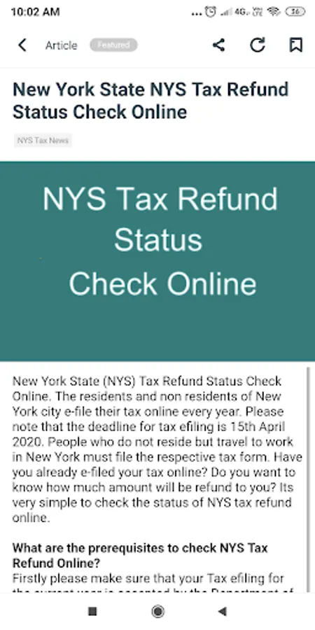 NYS Tax Refund status news is a mobile application which helps tax payer to track their refund status with help of given guidance. You can also check Tax Refund Schedule of New York State Tax Department.