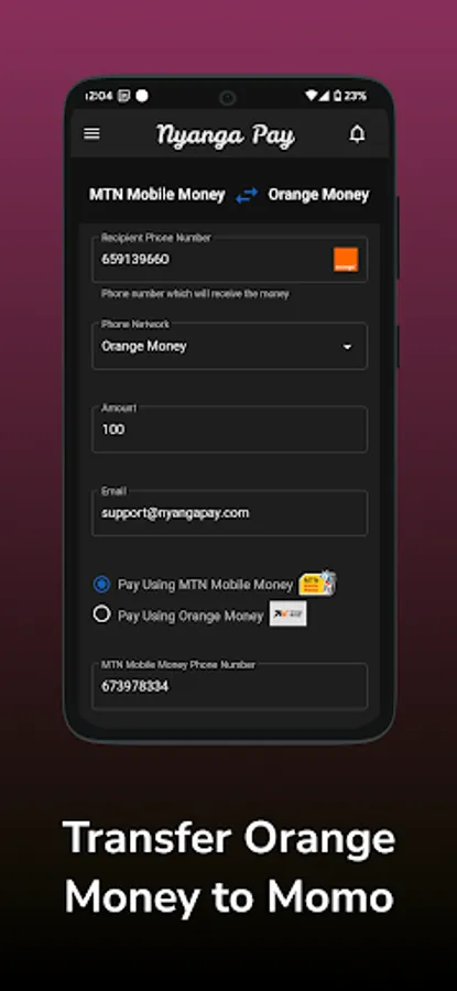 - Transfer MTN Mobile Money to Orange Money and vice versa.