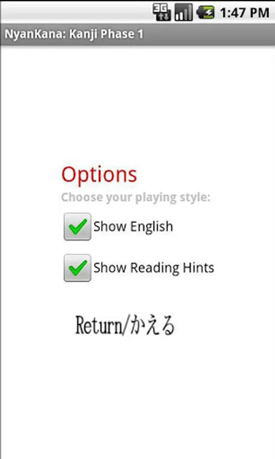 Practice your knowledge of kanji with this flash-card application. This version contains the 160 kanji taught during the 2nd grade of Japanese primary school.
