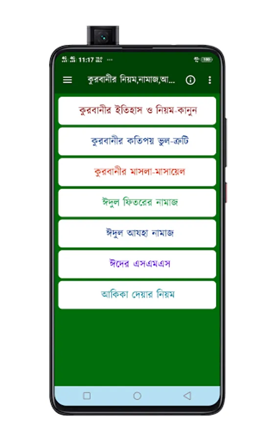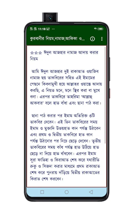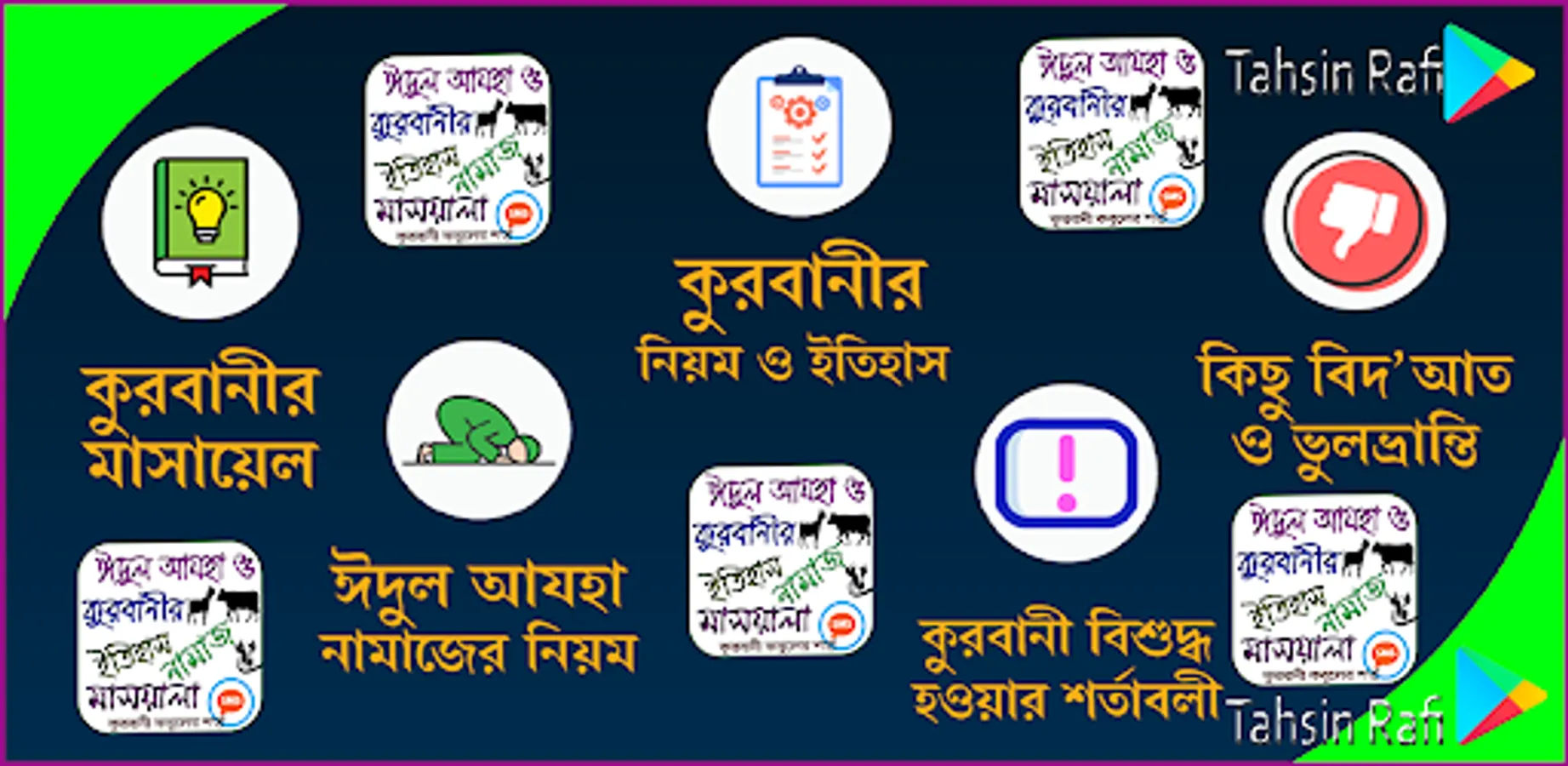 ঈদুল আযহা ২০২৩ ( Eid ul Adha 2020) এর বিধান , ঈদ উল আযহা (Eid ul ajha) এর দিনে আমাদের কি করণীয় ? কুর'আন - সুন্নাহর আলোকে আমরা অনেকেই বিষয়গুলি জানিনা। কুরবানীর ঈদের দিনে আমাদের কি করণীয় , কি বর্জণীয় , কিভাবে পশু জবেহ করতে হয় , কুরবানীর পশু কেমন হওয়া উচিত এসব নিয়ে আমাদের সকলের জ্ঞানই স্বল্পই। কুরবানী এর মাসায়েল ও ইতিহাস নিয়ে রয়েছে প্রচলিত কিছু ভুল - ভ্রান্তি । এসকল ভুল-ভ্রান্তি , কুসংস্কার ও অস্পষ্ট জ্ঞান কে দূর করতে এবং মাসায়েলে কুরবানী(কুরবাণীর) জানতে সহায়ক হবে আমাদের অ্যাপসটি।