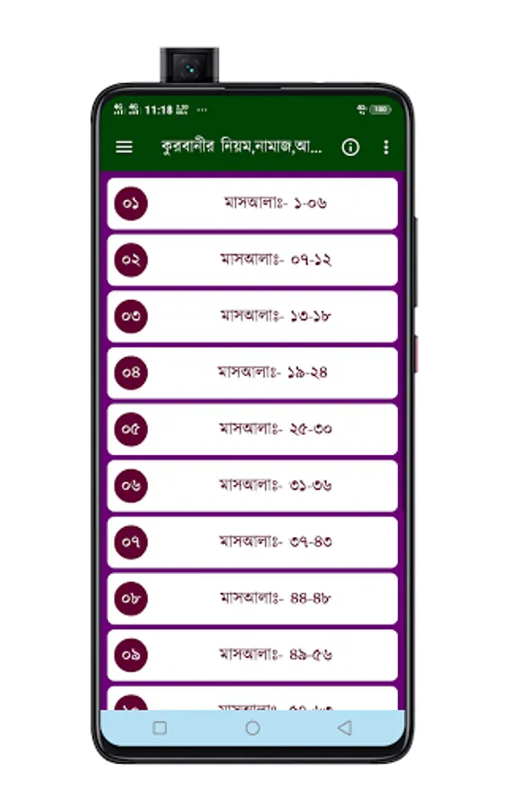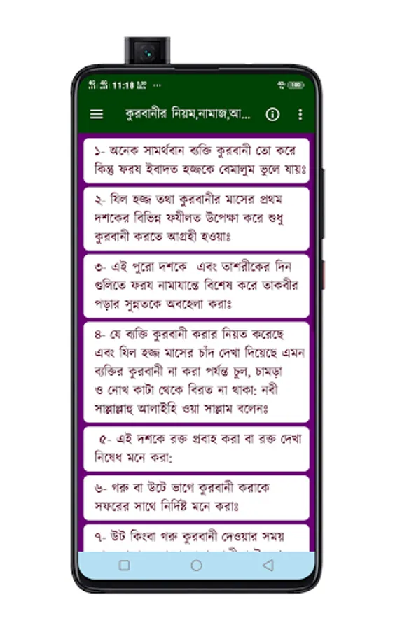 কুরবানী ও কুরবানী এর মাসায়েল জানা অত্যন্ত জরুরি. কুরবানী এর নিয়ম ও ইতিহাস জানলেই কুরবানীর গুরুত্ব সবাই উপলব্ধি করতে পারবে ।কুরবানী ঈদ বা ঈদুল আযহা মুসলমানদের জন্য দ্বিতীয় আনন্দময় ধর্মীয় উৎসব।কুরবানি (Kurbani) কুরবানীর মাসায়েল একটি বাংলা ইসলামিক অ্যাপ।কুরবানী অর্থ ত্যাগ। ঈদুল আযহা (Eid ul azha) মূলত ত্যাগের উৎসব। কুরবানির সময় মুসলমানেরা তাদের সাধ্যমত আল্লাহর সন্তুষ্টি অর্জনের জন্য উট, গরু, দুম্বা কিংবা ছাগল কোরবানি বা জবাই করে। মহান আল্লাহ পাক পবিত্র কোরআন শরীফে কুরবানীর ইতিহাস সম্পর্কে সুন্দর বর্ননা দিয়েছেন যা থেকে আমরা কুরবানির গুরুত্ব ও তাৎপর্য বুঝতে পারি।কুরবানি বা কোরবানি দেওয়ার সুন্নাহ রয়েছে। যে কোনো ভাবে , একটা পশু জবাই করলেই কুরবানি বা কুরবানী হয় না। যেমন একটি মাসালা বা মাসায়েল হচ্ছে, ঈদুল আযহার নামাজের আগে কুরবানি করা সঠিক নয়- এরকম কেউ করলে কুরবানী বা কোরবানি হবে না। এমন ৭১ টি মাসয়েলে রয়েছে আমাদের অ্যাপসটিতে। মাসায়েল সমূহ মাসিক আল কাউসার এর অফিসিয়াল ওয়েবসাইট থেকে সংগ্রহ করা হয়েছে।