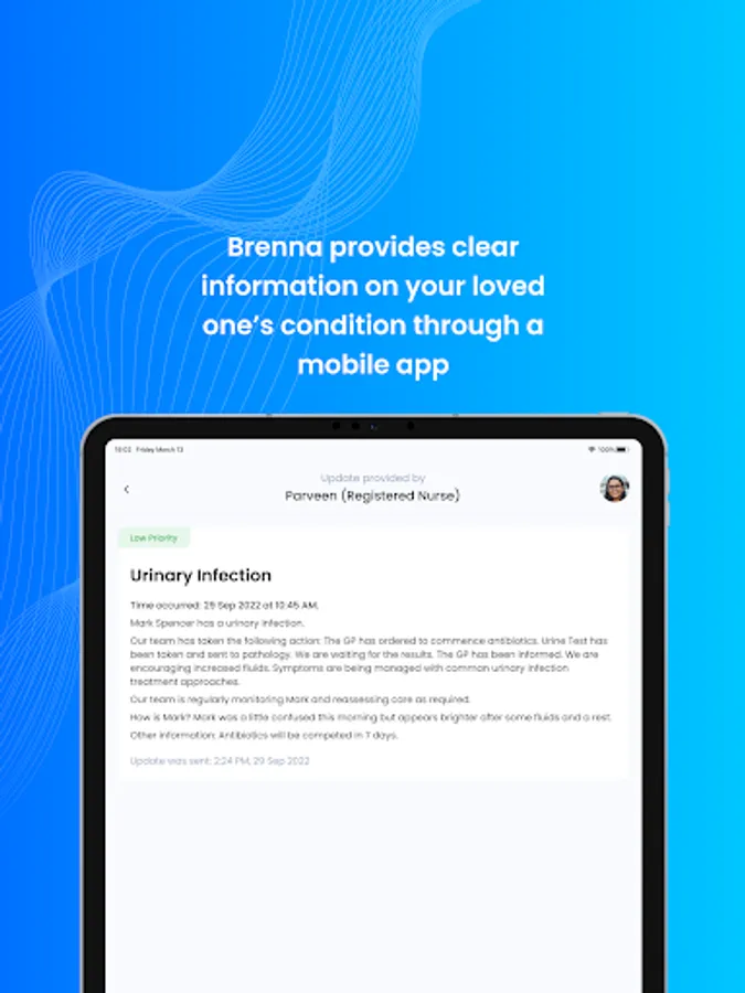 Brenna is a new communication app for residential aged care. Brenna will provide family members with digital updates on the resident's health and wellbeing. It makes communication between residential aged care homes and the family members of residents simple and easy.