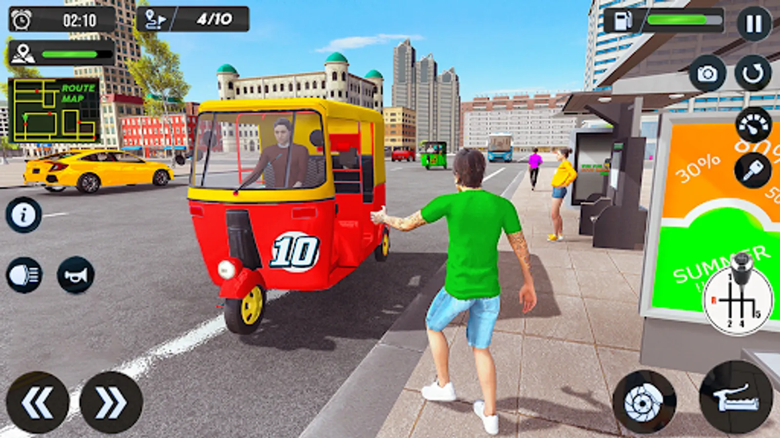 As a Modern tuk tuk Auto driver 3d driver, you must pick up and drop off passengers at their designated locations. However, you must ensure that you arrive on time or your passengers will be late! To pick up and drop off your passengers at their destination, ensure that you drive quickly and fight the insanely congested traffic. During work, you will have the chance to do some crazy city rickshaw drifting in heavy traffic! Who wouldn't enjoy that? Prepare to drive a public transportation vehicle and embark on an exciting pick-up and drop-off adventure.