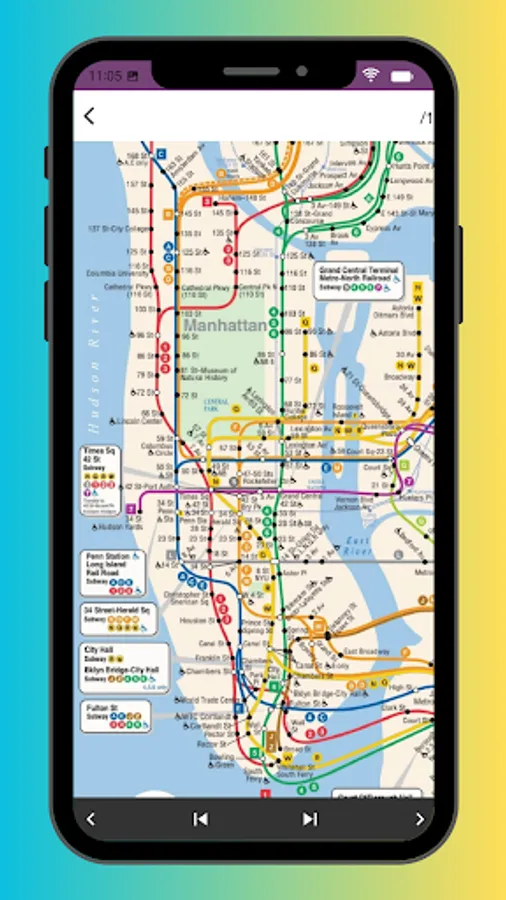There are no bells, whistles, or additional complications on this New York metro map. The subway map only allows you to zoom in and out. Very simple and straightforward! Opens the New York map immediately, allowing you to rapidly decide whether to take the train in front of you or wait for the next one. The program is small enough to download quickly regardless of network speed.