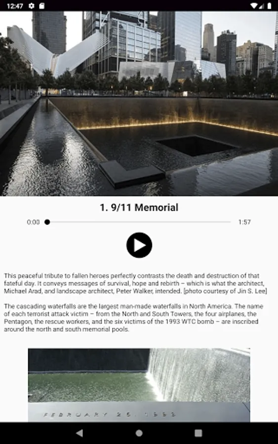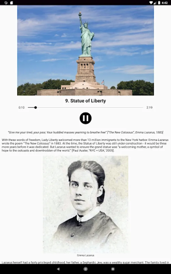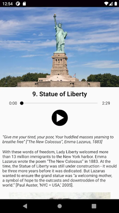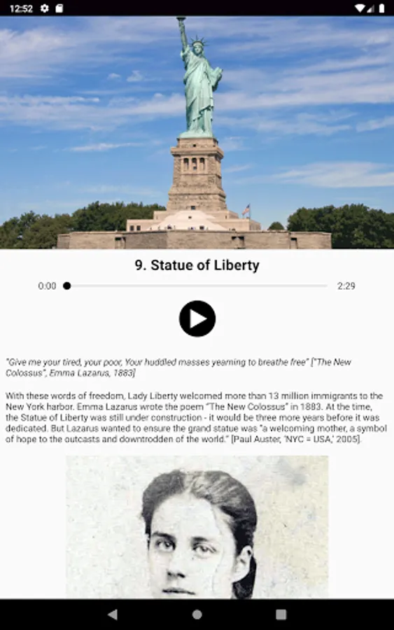 The best, easiest to use New York City tour app around! This walking guide to historic NYC, complete with audio narration, has all the best parts of a guided tour, while allowing you to travel at your own pace, avoid crowds, and explore. Why strain your eyes to see a distant statue from a tour bus, or get rushed through the best sites? See NYC the way it was meant to be seen: on foot.
