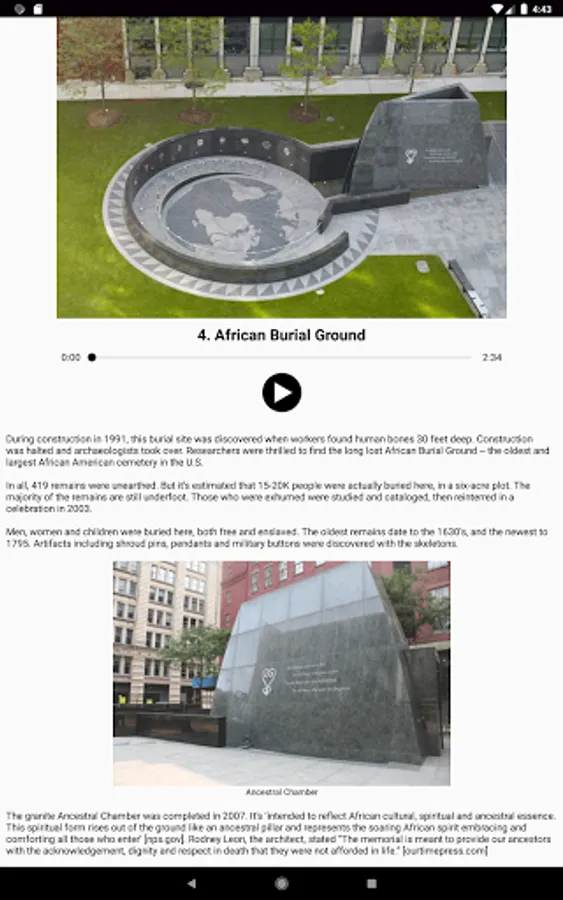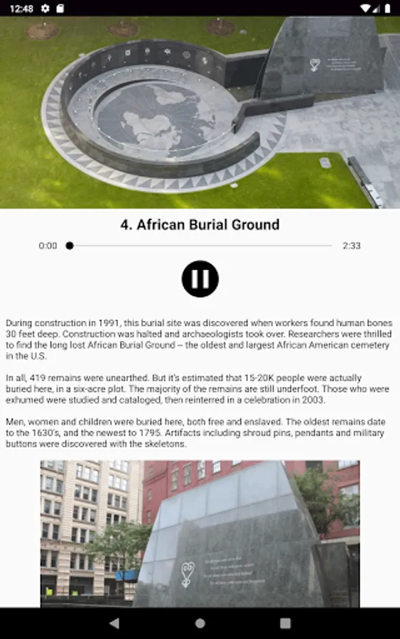 16 history-rich sites in lower Manhattan are included, spanning about 3.5 miles. Stop to explore your favorite sites, skip the travel schedules, maybe break for lunch - it's like having your own personal tour guide, at a fraction of the cost!